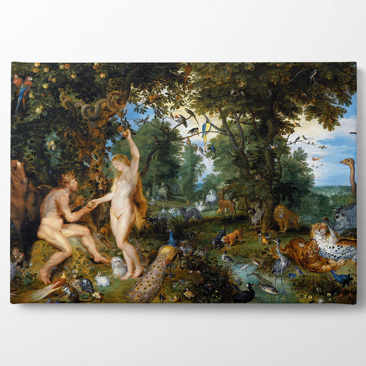 Zamansız bir klasik. 350gsm pamuk kanvas kumaşa basılan özel 1615’de yapılan ünlü The Garden of Eden with the Fall of Man, 1615 adlı Kanvas Art ile tanışın. Galeri kalitesinde bir yüzey sağlayan görüntü, UV pigment mürekkepler sayesinde canlı görünür ve 30 mm derinliğindeki köknar ağacından çerçeve üzerine elle gerilerek birleştirilir. Kargo esnasında ürüne zarar gelmemesi için özel önlemlerimizle paketlenir ve gönderilir.